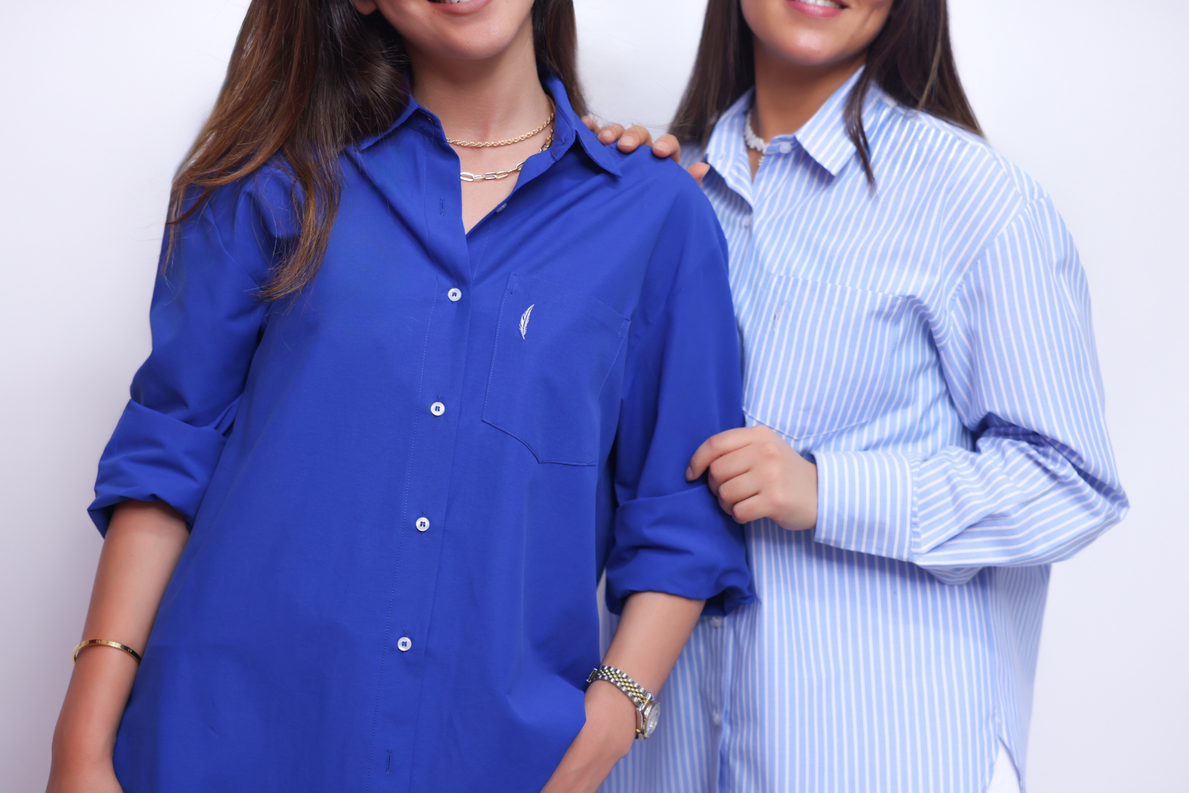Affirmez votre style avec cette chemise femme oversize bleu rayé, pensée pour allier confort, modernité et élégance. Sa coupe fluide offre une liberté de mouvement optimale tout en sublimant la silhouette.