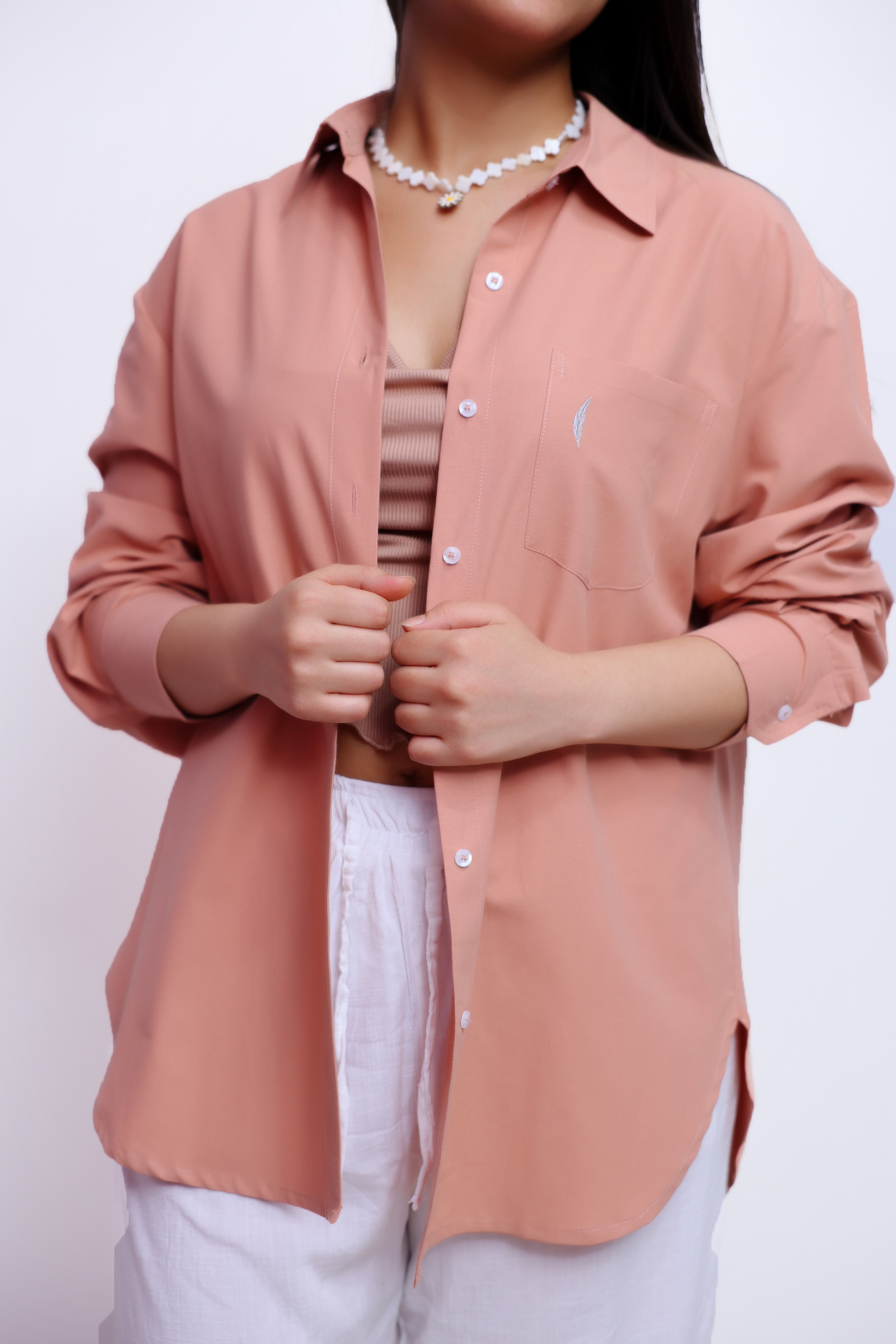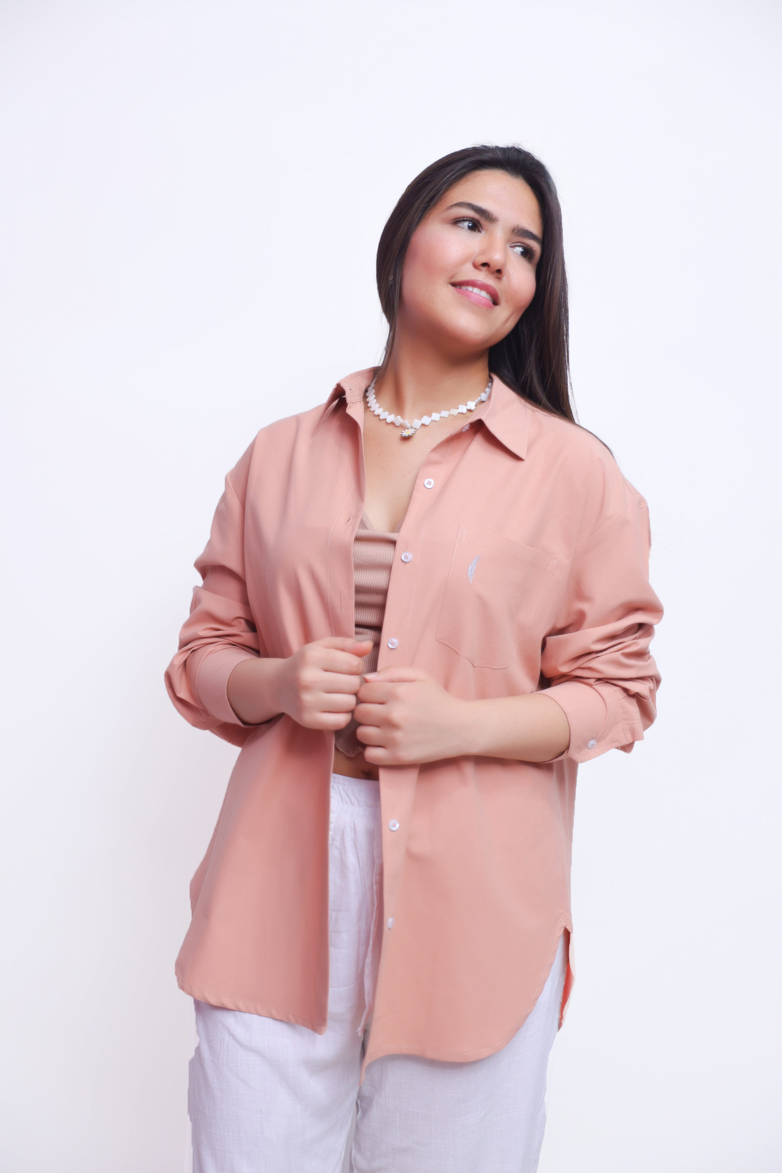 Affirmez votre style avec cette chemise femme oversize saumon, pensée pour allier confort, modernité et élégance. Sa coupe fluide offre une liberté de mouvement optimale tout en sublimant la silhouette.